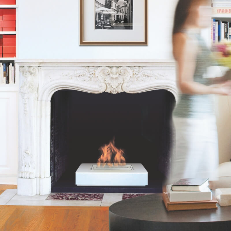 Cheminée indoor éthanol Haussmann XL, modèle avec bloc de combustion. Bloc en métal à poser. A placer au cœur de votre pièce à vivre ou dans une cheminée ancienne que vous souhaiteriez réhabiliter.