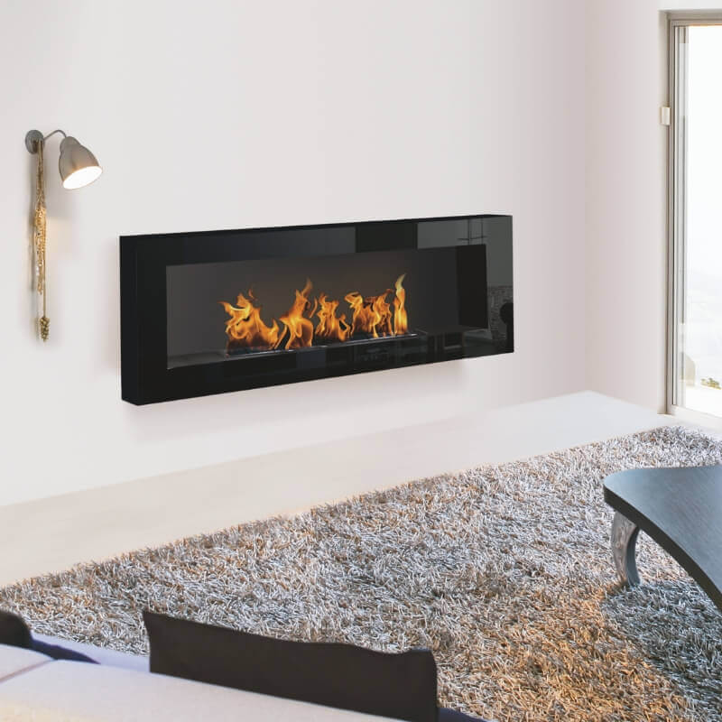 Cheminée indoor éthanol Tokyo, modèle avec bloc de combustion. Cheminée murale en métal avec brûleur en inox brossé. Existe en dimensions L, XL et XXL.