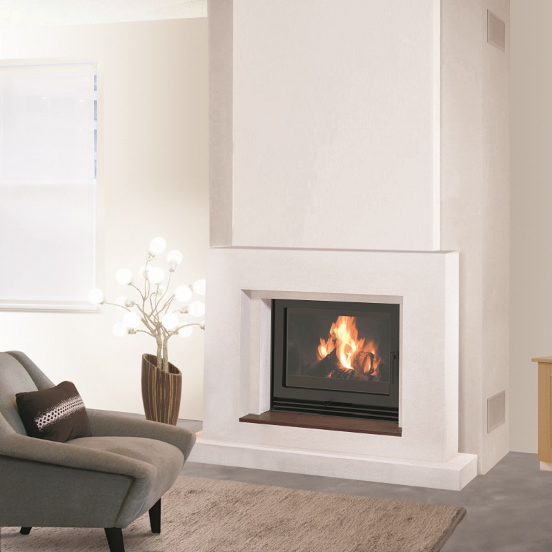 Foyer à bois P75, 1 face vitrée. Ce foyer de 75cm de largeur pourra être installé dans une cheminée de face adossée ou encastrée.