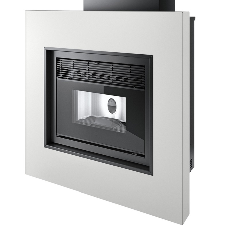 Insert à pellets ou granulés de bois nouvelle génération pilotable par wifi associé à un cadre pierre ou céramique.