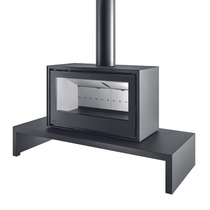 La tendance aux poêles design posés sur un banc, bûcher ou podium en fait un objet qui donne du caractère à votre intérieur. On sera séduit par le côté pratique du vaste range-bûches intégré sous le banc.